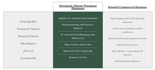 Heroganic Nature Premium Shampoo is thoughtfully crafted with a potent infusion of 10+ Ayurvedic herbs, 5 deeply nourishing oils, natural proteins, and essential vitamins. Unlike chemical-loaded shampoos, this premium formula offers gentle cleansing with deep nourishment, bringing your hair back to its natural strength, shine, and vitality.